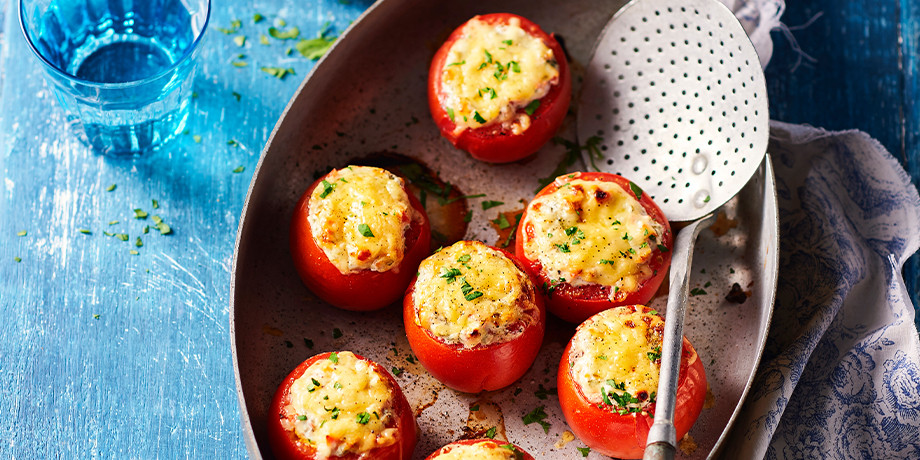 Vervang de oregano door basilicum of 1 eetlepel pesto. Ook lekker: met kruidenkwark gevulde halve paprikas. Blancheer de paprikas 2-3 minuten en laat ze voor het vullen goed uitlekken.